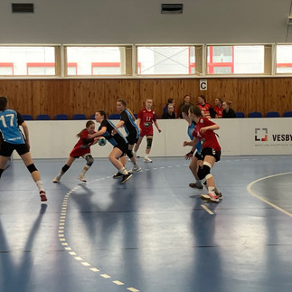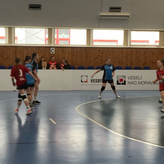 První zápas hrál náš tým proti SHK Veselí n. M. Hned od začátku jsme nastoupili do zápasu odpovědně a vedli 5:1 a drželi jsme si vedení až do konce zápasu. Díky skvělému výkonu našich žaček jsme zápas dotáhli do vítězného konce s výsledkem 13:11. Hráli jsme venku proti domácímu týmu, což může být velkou výhodou pro domácí tým, ale naše hráčky dokázaly překonat nepříznivé podmínky a zvítězit.